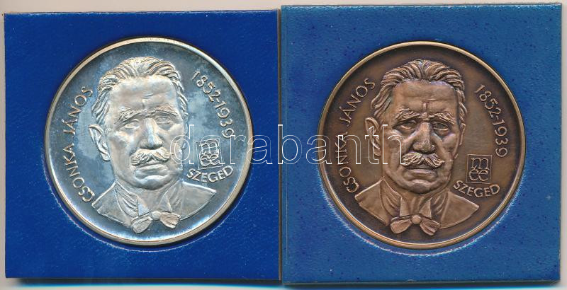 Leírás: Fritz Mihály (1947-) 1989. "MÉE Szeged - Budai Baráti Kör / Csonka János" Br (42,5mm) és Ag emlékérem (35,65g/0.900/42,5mm) pár T:2