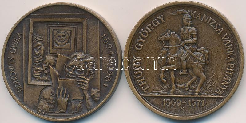 Leírás: Képíró Zoltán (1944-1981) 1980. "MÉE Nagykanizsa / Thúry György Kanizsa várkapitánya" Br emlékérem (42,5mm) + Kiss Sándor (1925-1999) 1984. "Szombathelyi Képtárépítő Egyesület / Derkovits Gyula" Br emlékérem (42,5mm) T:1