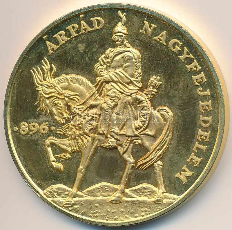 Leírás: Lebó Ferenc (1960-) 1996. "A honfoglalás emlékére / Árpád Nagyfejedelem" aranyozott emlékérem (42,5mm) T:PP ujjlenyomatos