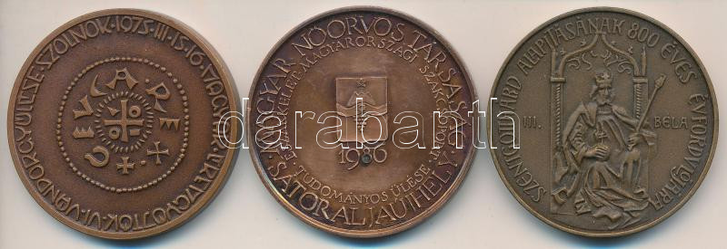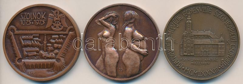 Leírás: Nagy István (1920-) 1975. "Magyar Éremgyűjtők VI. Vándorgyűlése Szolnok / Szolnok 1075-1975" Br emlékérem (42,5mm) + Kiss Sándor (1925-1999) 1983. "MÉE Szombathelyi csoportja - Szentgotthárd 800 éves" Br emlékérem (42,5mm) + Lapis András (1942-) 1986. "Magyar Nőorvos Társaság - Sátoraljaújhely / Északkelet-magyarországi szakcsoport tudományos ülése" Br emlékérem (42,5mm) T:1-,2