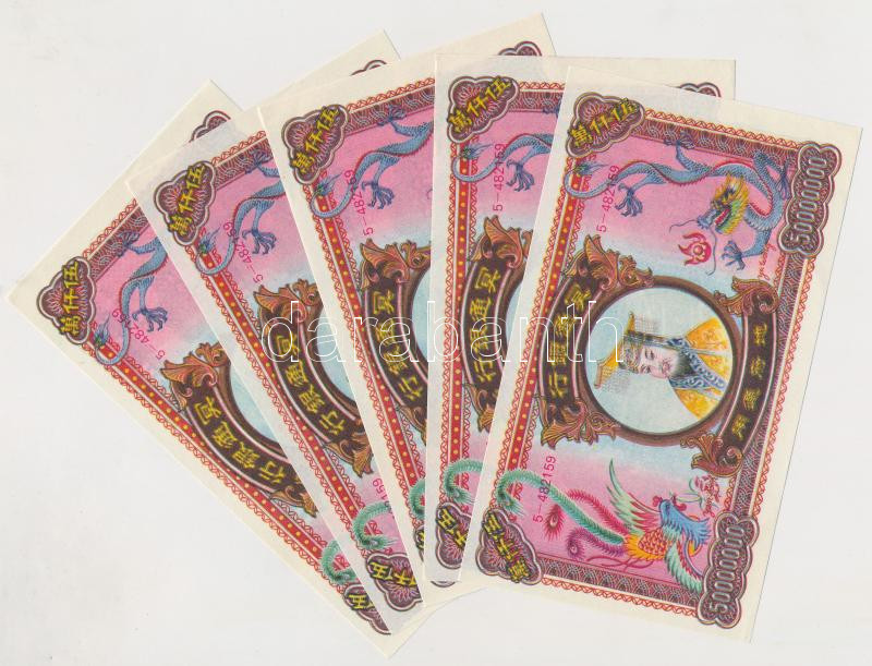 Kína DN Égetési pénz 150db 50.000.000 névértékben sérült eredeti csomagolásban T:I China ND Hell banknotes in damaged original packing 150x 50.000.000 C:UNC
