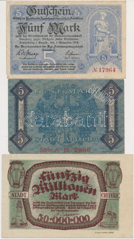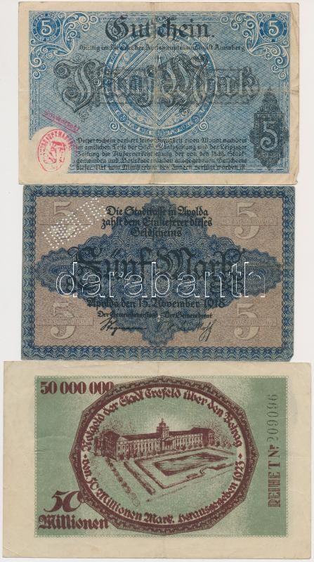 Leírás: Németország / Weimari Köztársaság 1918-1923. 5db klf szükségpénz, közte Annaberg, Benrath, Delmenhorst T:III