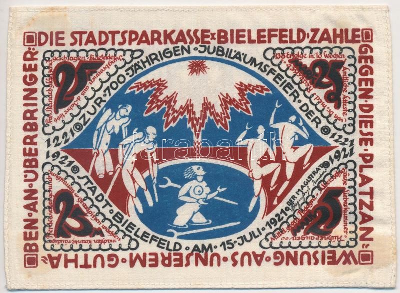 Leírás: Németország / Weimari Köztársaság / Bielefeld 1921. 25M selyem, bélyegzéssel T:I