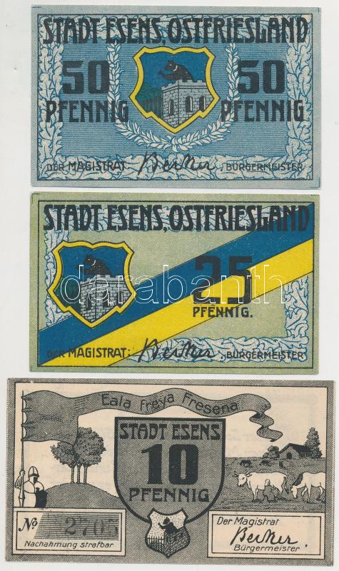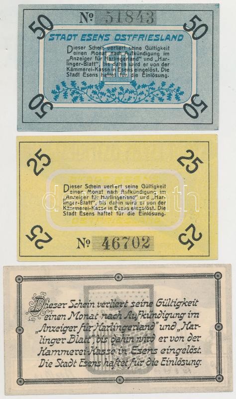 Germany / Weimar Republic / Esens ~1920. 10 Pfennig + 25 Pfennig + 50 Pfennig C:UNC,AU