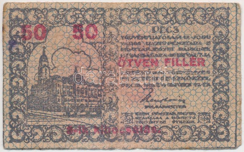 Pécs 1919. 50f házipénztár-pénztárjegy T:III https://www.darabanth.com/hu/261-Gyorsarveres/261.0/Numizmatika/Magyar-es-kulfoldi-papir-es-fem-szuksegpenzek~300006/Pecs-1919-50f-hazipenztar-penztarjegy-TIII~II1297990