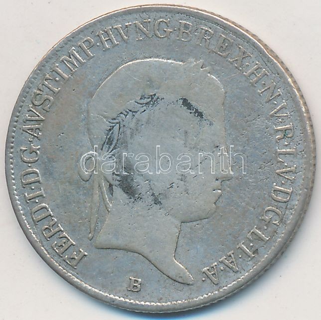 Huszár: 2081., Unge... https://www.darabanth.com/hu/261-Gyorsarveres/261.0/Numizmatika/Magyar-es-magyar-verdejelu-fem-es-ezustpenzek~300008/1837B-20kr-Ag-V-Ferdinand-T3-patina--Huszar-2081-Unger-III1419~II1296477