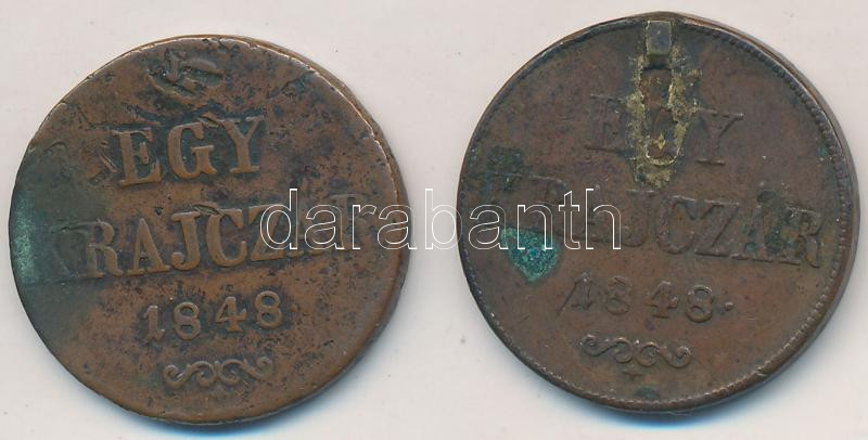 Leírás: 1848. 1kr Cu (2x) T:3,3- egyik sérült