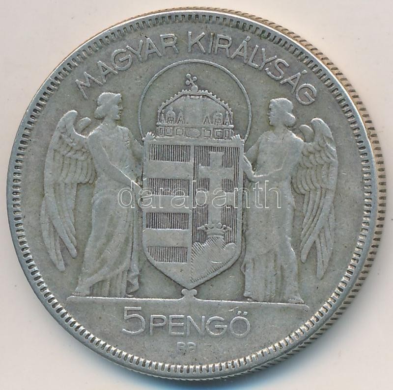 Leírás: 1930. 5P Ag "Horthy jobbra" T:3