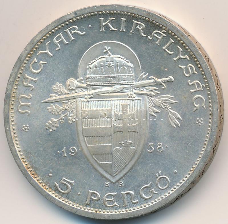 Adamo P8.1 https://www.darabanth.com/hu/261-Gyorsarveres/261.0/Numizmatika/Magyar-es-magyar-verdejelu-fem-es-ezustpenzek~300008/1938-5P-Ag-Szent-Istvan-T2-kis-patina---Adamo-P81~II1293675