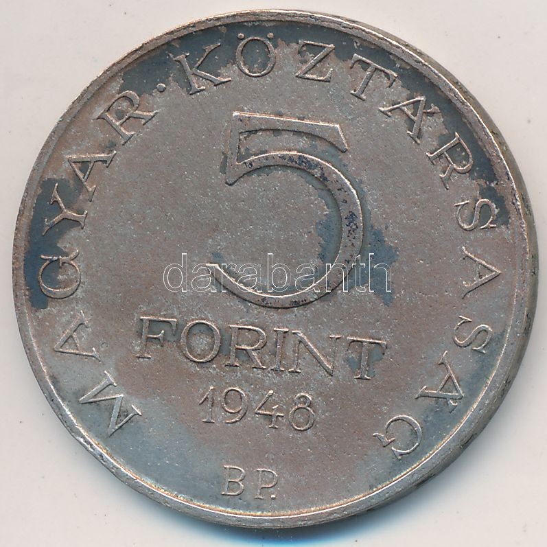 Leírás: 1948. 5Ft Ag "Petőfi" T:2- patina