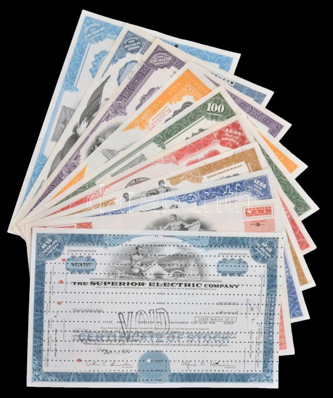 Amerikai Egyesült Államok 1961-1979. 10db klf részvény perforációval, bélyegzésekkel, lyukasztással érvénytelenítve T:I-III