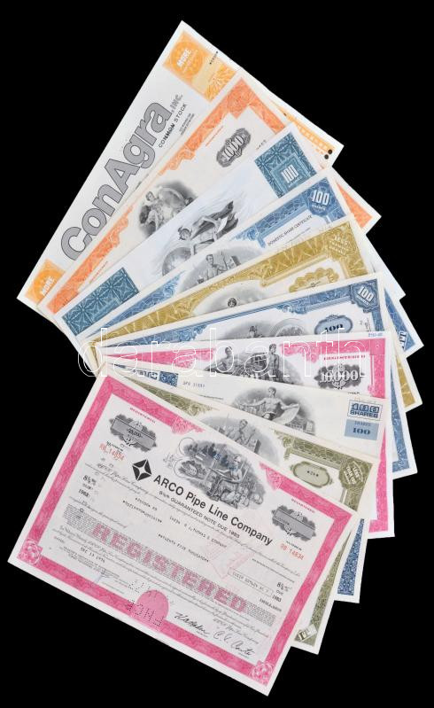 Amerikai Egyesült Államok 1961-1980. 10db klf részvény perforációval, bélyegzésekkel, lyukasztással érvénytelenítve T:I,I-