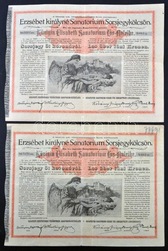 Budapest 1904. "Erzsébet királyné Sanatorium Sorsjegykölcsön"... https://www.darabanth.com/hu/261-Gyorsarveres/261.0/Numizmatika/Reszvenyek-es-sorsjegyek~300005/Budapest-1904-Erzsebet-kiralyne-Sanatorium-Sorsjegykolcson-sorsjegye-5K-rol-szarazpecset~II1293309