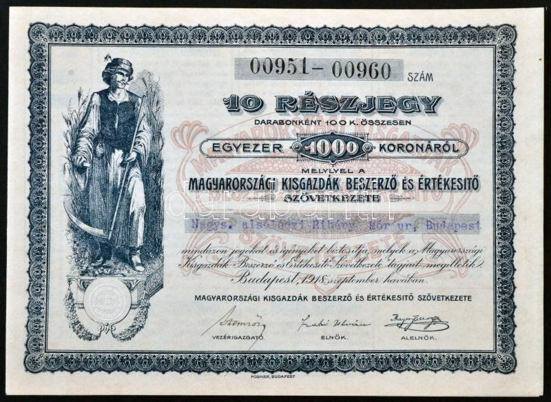 Budapest 1918. "Magyarországi Kisgazdák Beszerző és Értékesítő Sz... https://www.darabanth.com/hu/261-Gyorsarveres/261.0/Numizmatika/Reszvenyek-es-sorsjegyek~300005/Budapest-1918-Magyarorszagi-Kisgazdak-Beszerzo-es-Ertekesito-Szovetkezete-reszvenye-10~II1293270