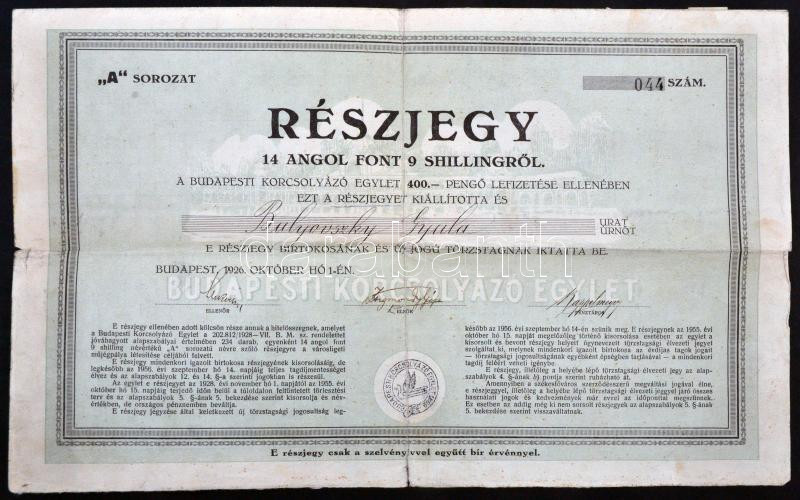 Budapest 1926. "Budapesti Korcsolyázó Egylet" részjegye 400P... https://www.darabanth.com/hu/261-Gyorsarveres/261.0/Numizmatika/Reszvenyek-es-sorsjegyek~300005/Budapest-1926-Budapesti-Korcsolyazo-Egylet-reszjegye-400P-rol-szelvenyekkel-TIII~II1277870