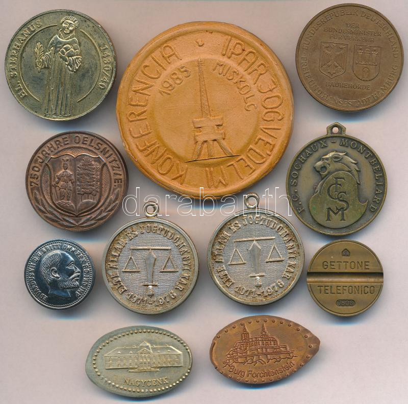 Leírás: 11db-os vegyes magyar és külföldi zseton és emlékérem tétel T:vegyes