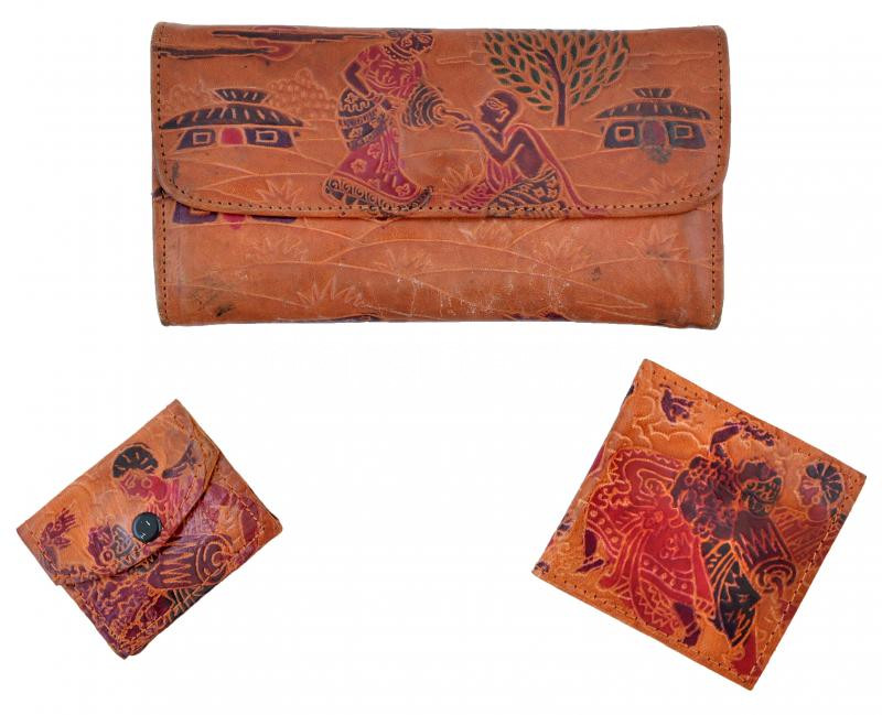 Leírás: 3 db bőr pénztárca, különböző méretben, 6×7-20×11 cm