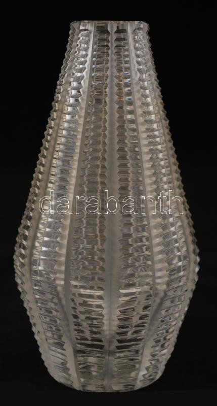 Leírás: Csiszolt üvegváza, apró lepattanásokkal. m: 16 cm.