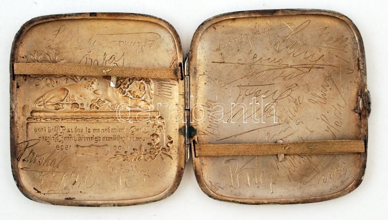 Oroszlános fém cigarettatartó, német felirattal, gravírozott nevekkel,... https://www.darabanth.com/hu/262-Gyorsarveres/262.0/Festmeny-mutargy-papirregiseg-egyeb/Bolhapiac~12/Oroszlanos-fem-cigarettatarto-nemet-felirattal-gravirozott-nevekkel-rosszul-zarodik-8-5x9~II1303843