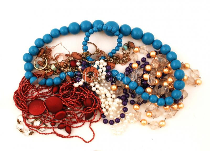 Leírás: Vegyes bizsu tétel, nyakláncok, karláncok változatos színekben és méretekben.