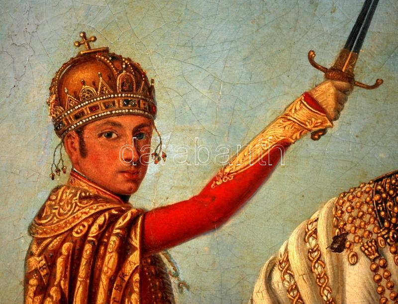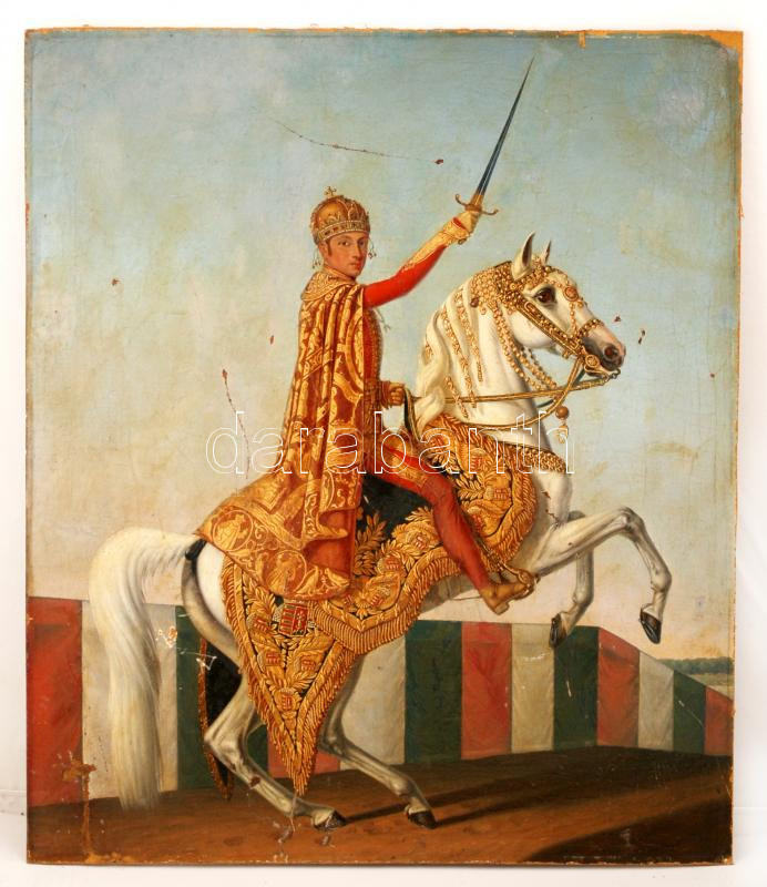 Jelzés nélkül: IV Károly a fehér lovon. Olaj, vászon-karton, sérült, 6... https://www.darabanth.com/hu/262-Gyorsarveres/262.0/Festmeny-mutargy-papirregiseg-egyeb/Festmenyek-es-grafikak~400051/Jelzes-nelkul-IV-Karoly-a-feher-lovon-Olaj-vaszon-karton-serult-63C39754-cm~II1301336
