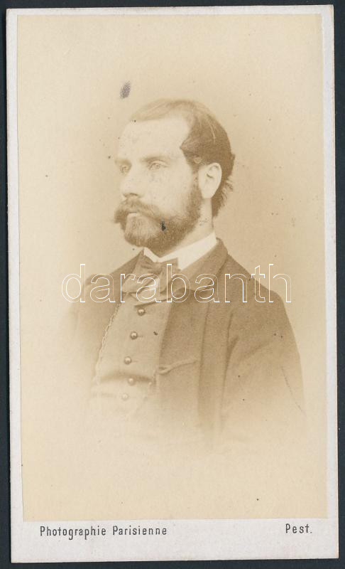 Leírás: cca 1880 Treichlinger József (1837-1902) könyv és zenemű kereskedő, bérház tulajdonos Pesten, feliratozott vizitkártya méretű műtermi portré, 10x6 cm