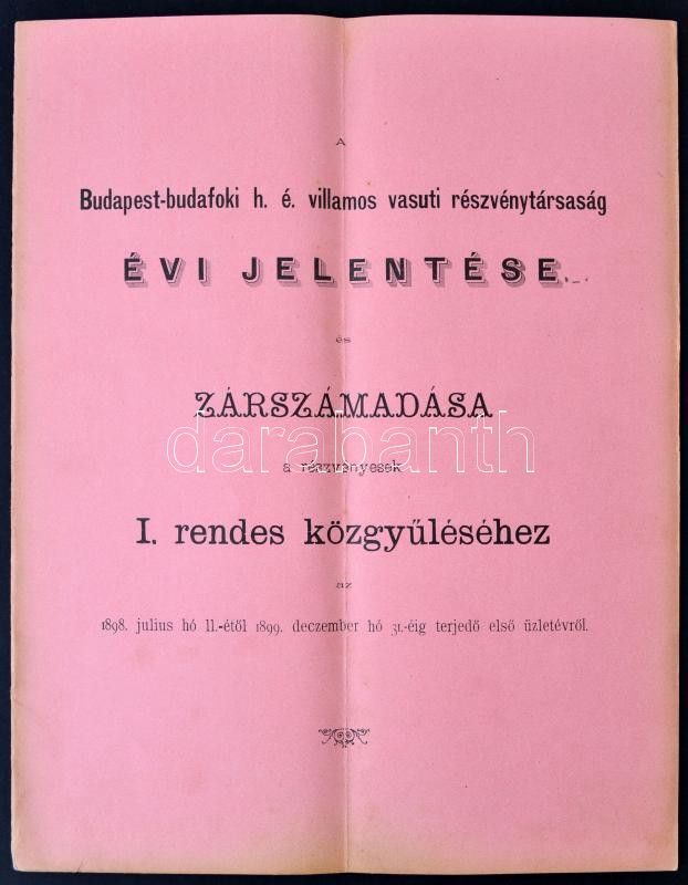 1898 Budapest-budafoki h. é. villamos vasuti részvénytársaság évi jele... https://www.darabanth.com/hu/262-Gyorsarveres/262.0/Festmeny-mutargy-papirregiseg-egyeb/Nyomtatvanyok~20/1898-Budapest-budafoki-h-e-villamos-vasuti-reszvenytarsasag-evi-jelentese-es-zarszamada~II1304785