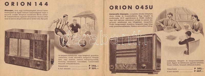 1941 Orion rádió képes reklám katalógus 24p. https://www.darabanth.com/hu/262-Gyorsarveres/262.0/Festmeny-mutargy-papirregiseg-egyeb/Nyomtatvanyok~20/1941-Orion-radio-kepes-reklam-katalogus-24p~II1257519