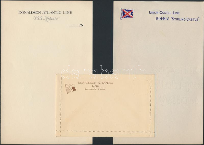 Leírás: cca 1920-30 A Donaldson Atlantic Line és a Union Castle Line hajóstársaságok fejléces levelezőlapjai, összesen 3 db.