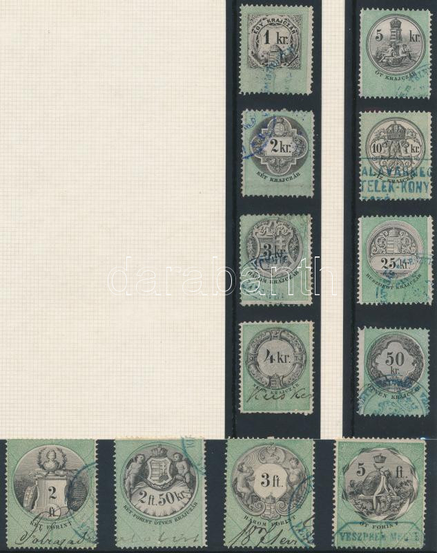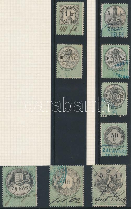 Leírás: 1869 Okmánybélyeg 10 1/2 fogazású teljes sor + 9 db bélyeg