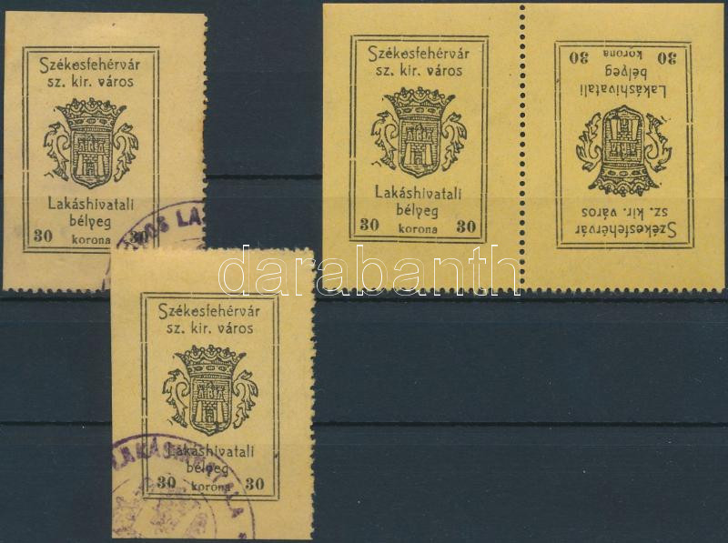 Leírás: 1920 Székesfehérvár városi illetékbélyeg 30K Lakáshivatali bélyeg 2 db bélyegzett + vízszintes postatiszta fordított pár (84.000)