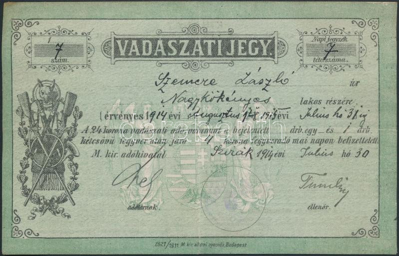 1914 Vadászati jegy / Hunter id.