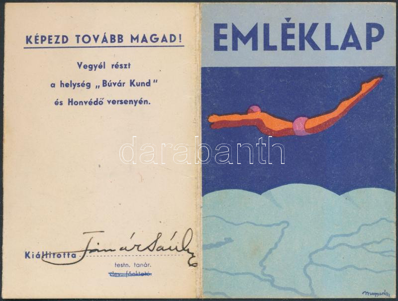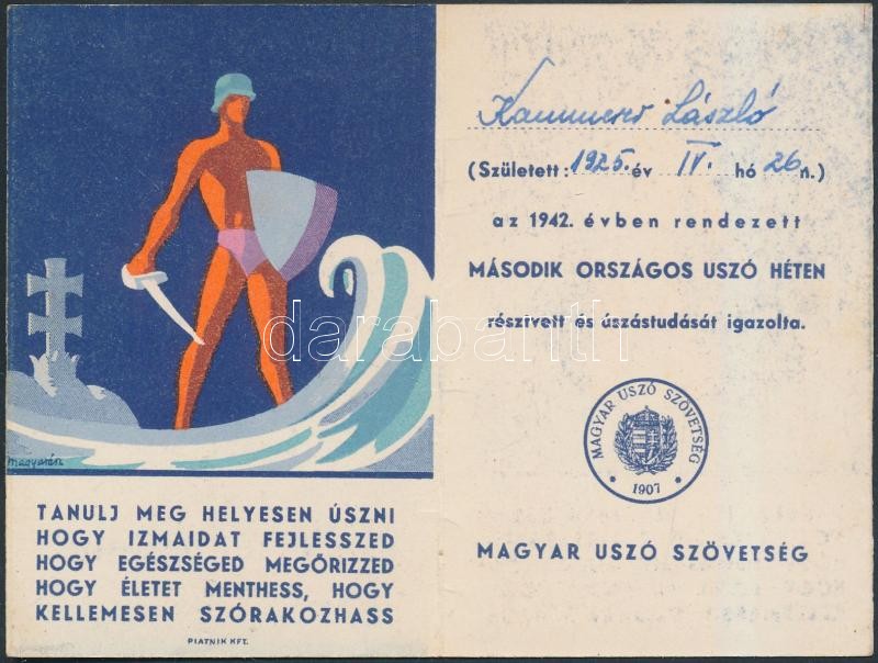 1942 A Magyar Úszó Szövetség által a Második Országos Úszó Hét alkalmá... https://www.darabanth.com/hu/262-Gyorsarveres/262.0/Festmeny-mutargy-papirregiseg-egyeb/Okmanyok~36/1942-A-Magyar-Uszo-Szovetseg-altal-a-Masodik-Orszagos-Uszo-Het-alkalmabol-kiadott-emlek~II1254975