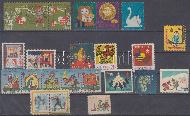 Leírás: Levélzáró összeállítás: 6 db dán, 2 db finn, 2 db svéd, 11 kanadai, 1-1 norvég és venezuelai (összesen 23 db)