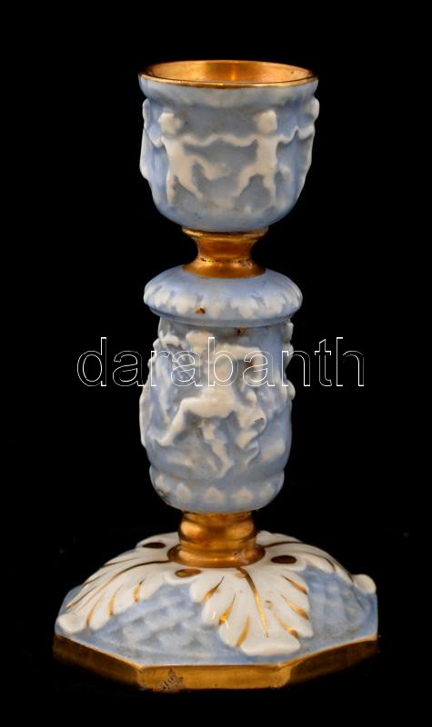 Leírás: Porcelán gyertyatartó, kézzel festett, jelzett, apró kopásnyomokkal, m: 16,5 cm