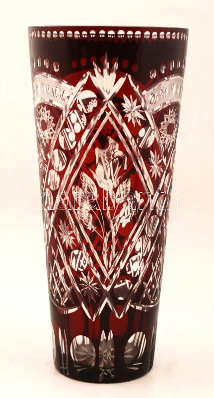 Rubinvörös csiszolt dekoratív kristályváza, több rétegű, hibátlan, m: ... https://www.darabanth.com/hu/262-Gyorsarveres/262.0/Festmeny-mutargy-papirregiseg-egyeb/Uvegtargyak~8/Rubinvoros-csiszolt-dekorativ-kristalyvaza-tobb-retegu-hibatlan-m-29-5-cm~II1282990