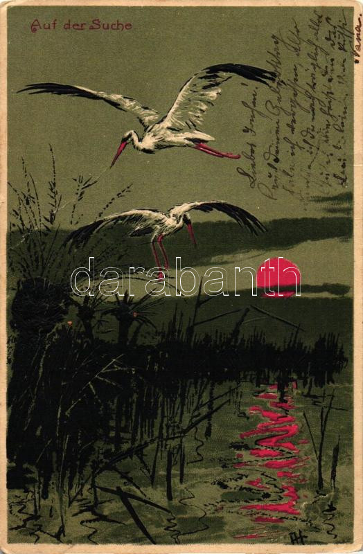 Leírás: Auf der Suche / Stork, Emb. litho s: Arthur Heyer (EK)