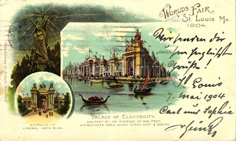 1904 Saint Louis, St. Louis; World's Fair, Palace of Electricity,... https://www.darabanth.com/hu/262-Gyorsarveres/262.0/Kepeslapok/Amerikai-Egyesult-Allamok~100003/1904-Saint-Louis-St-Louis-Worlds-Fair-Palace-of-Electricity-Entrance-to-Liberal-Arts-fa~II1299562