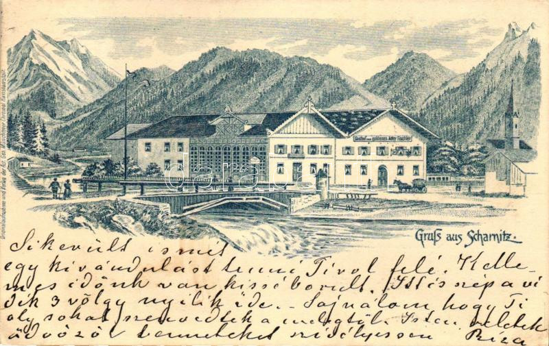 Leírás: 1896 Scharnitz (Tyrol), Gasthof zum goldenen Adler Fischler / guest house (EK)