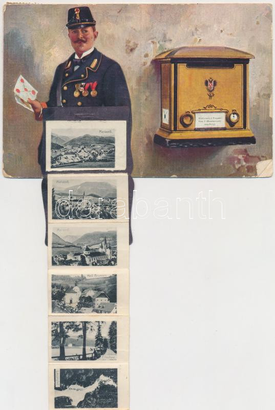 Mariazell, postman, leporellocard; Ottmar Zieher's Kunstanstalt (... https://www.darabanth.com/hu/262-Gyorsarveres/262.0/Kepeslapok/Ausztria~100004/Mariazell-postman-leporellocard-Ottmar-Ziehers-Kunstanstalt-b~II1283070