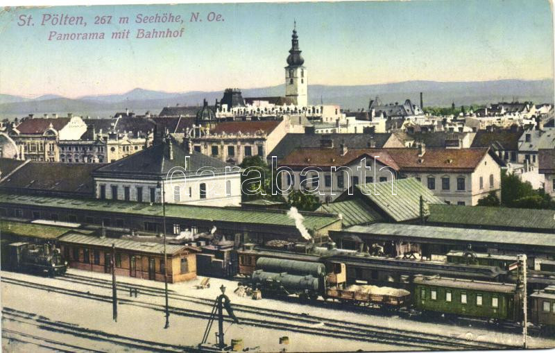 Leírás: St Pölten, Panorama mit Bahnhof / railway station (EK)