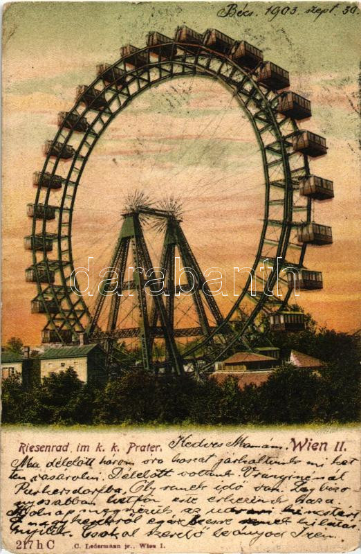 Vienna, Wien II. Riesenrad im K.k. Prater / ferris wheel (EK) https://www.darabanth.com/hu/262-Gyorsarveres/262.0/Kepeslapok/Ausztria~100004/Vienna-Wien-II-Riesenrad-im-Kk-Prater-ferris-wheel-EK~II1267460