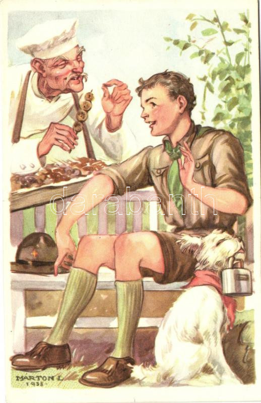 Leírás: A cserkész takarékos; Cserkész levelezőlapok kiadóhivatal / Hungarian scouting art postcard s: Márton L.