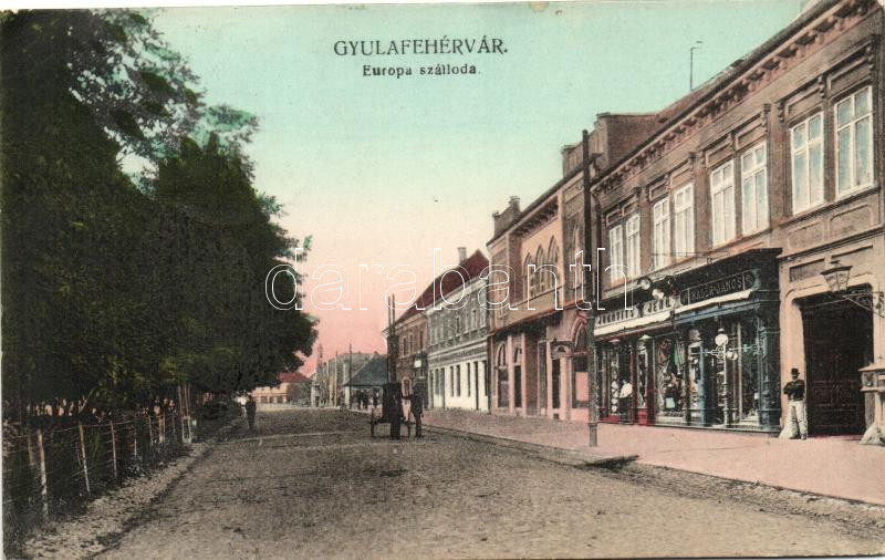 Gyulafehérvár, Alba Iulia; Európa szálloda, Judovits Jenő és Nádor Ján... https://www.darabanth.com/hu/262-Gyorsarveres/262.0/Kepeslapok/Erdely~100025/Gyulafehervar-Alba-Iulia-Europa-szalloda-Judovits-Jeno-es-Nador-Janos-uzletei-Hotel-Eu~II1300740