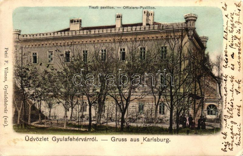 Gyulafehérvár, Karlsburg, Alba Iulia; Tiszti pavilon, kiadja Petri F. ... https://www.darabanth.com/hu/262-Gyorsarveres/262.0/Kepeslapok/Erdely~100025/Gyulafehervar-Karlsburg-Alba-Iulia-Tiszti-pavilon-kiadja-Petri-F-Vilmos-officers-pavilion-~II1299151