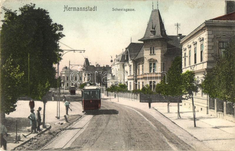 Leírás: Nagyszeben, Hermannstadt, Sibiu; utca, villamos / street, tram (EK)