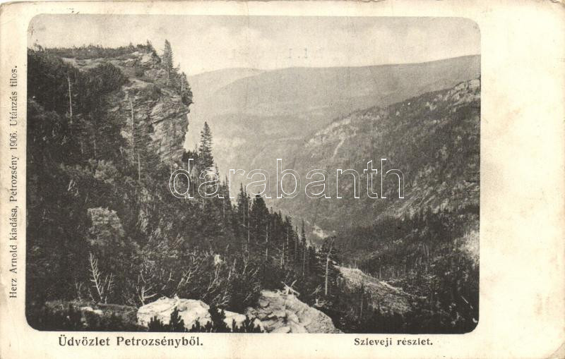 Leírás: Petrozsény, Petrosani; Szleveji részlet, kiadja Herz Arnold (kis szakadás / small tear)