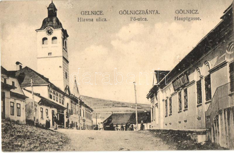 Gölnicbánya, Gelnica; Fő utca, Takarékpénztár / main street, savings b... https://www.darabanth.com/hu/262-Gyorsarveres/262.0/Kepeslapok/Felvidek~100026/Golnicbanya-Gelnica-Fo-utca-Takarekpenztar-main-street-savings-bank~II1301203