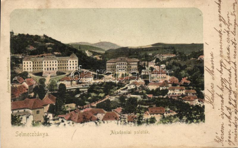 Leírás: Selmecbánya, Akadémiai paloták; kiadja Joerges / view with academic palaces