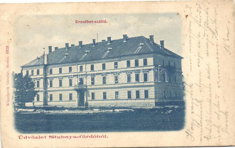 Leírás: Stubnyafürdő, Erzsébet szálloda; kiadja Wlaszlovits Gusztáv 1028 / hotel